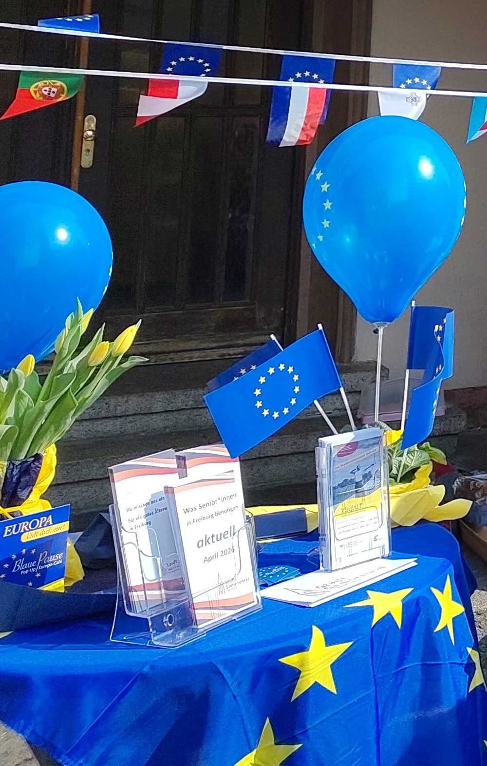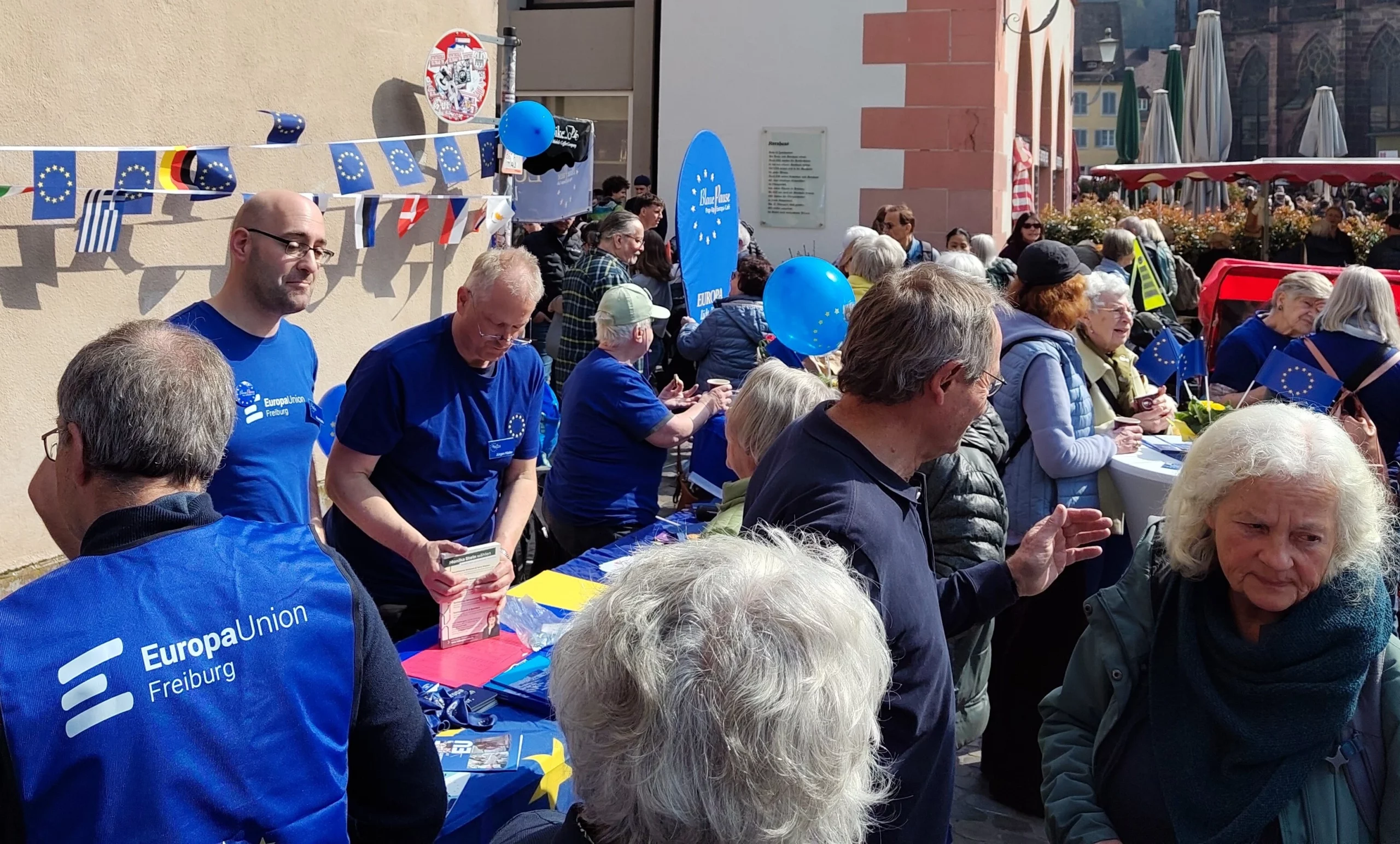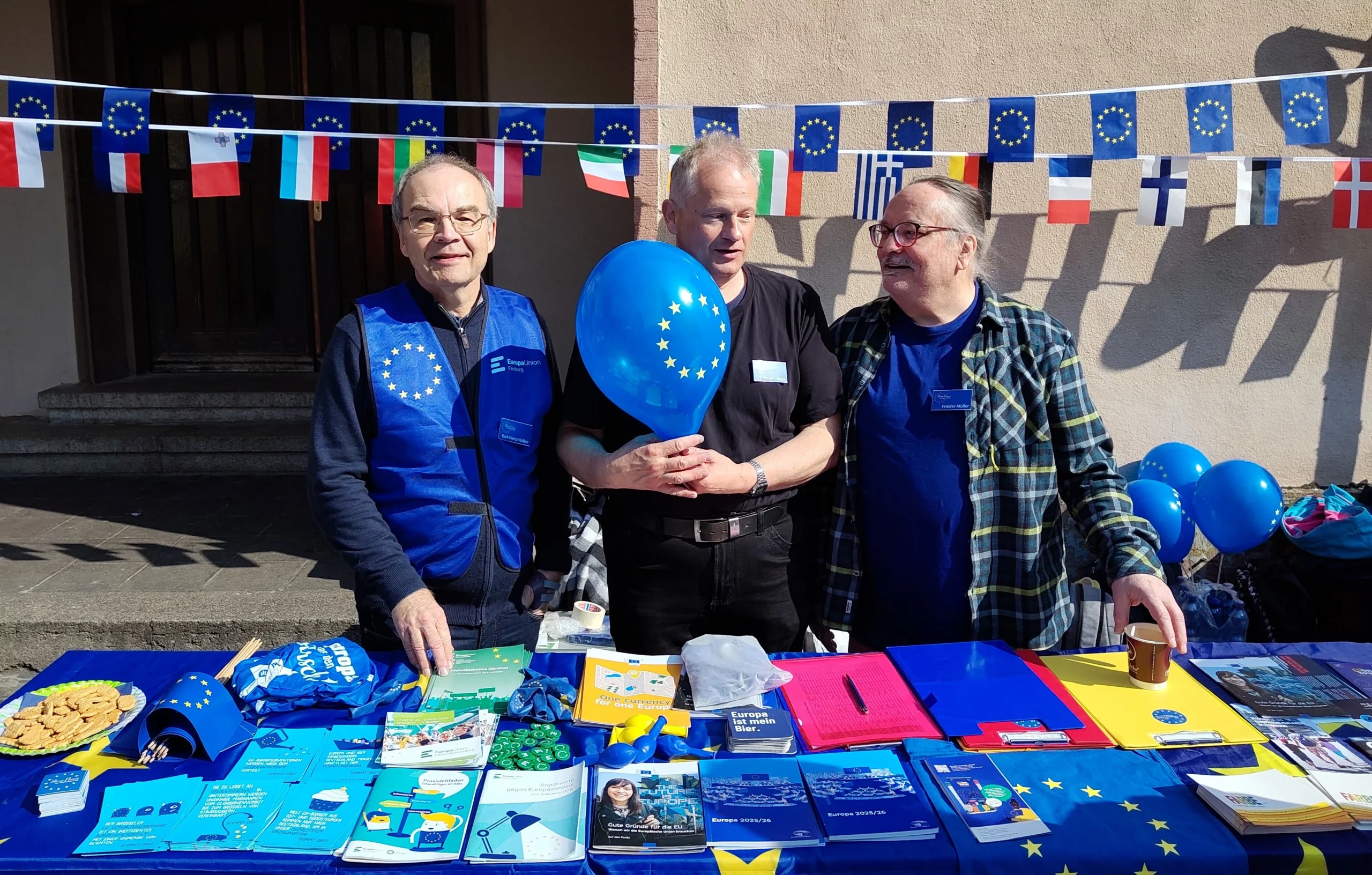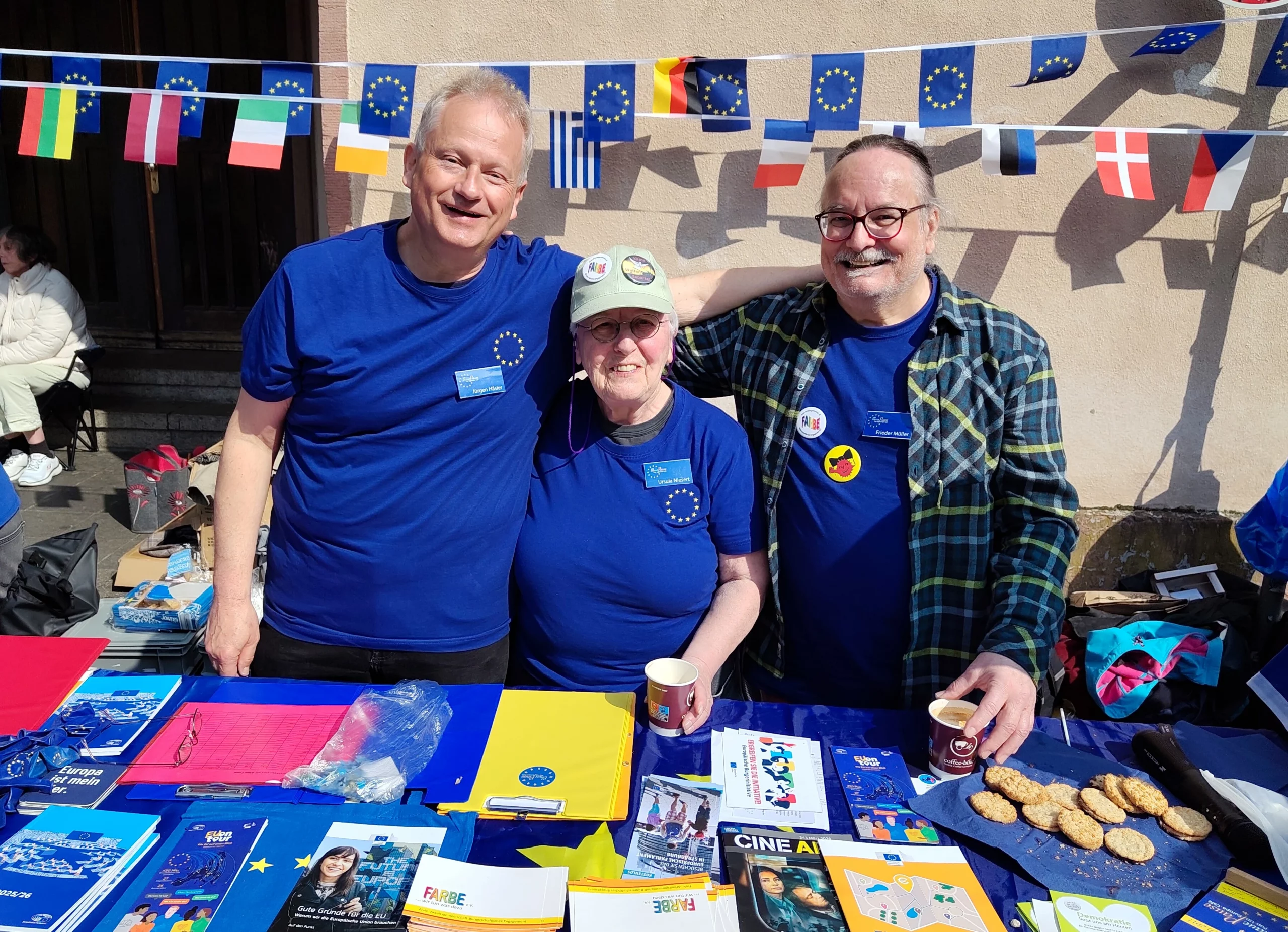 Unsere Stände kurz nach Abschluss der Aufbauarbeiten, von der Conrad-Gröber-Straße aus fotografiert.