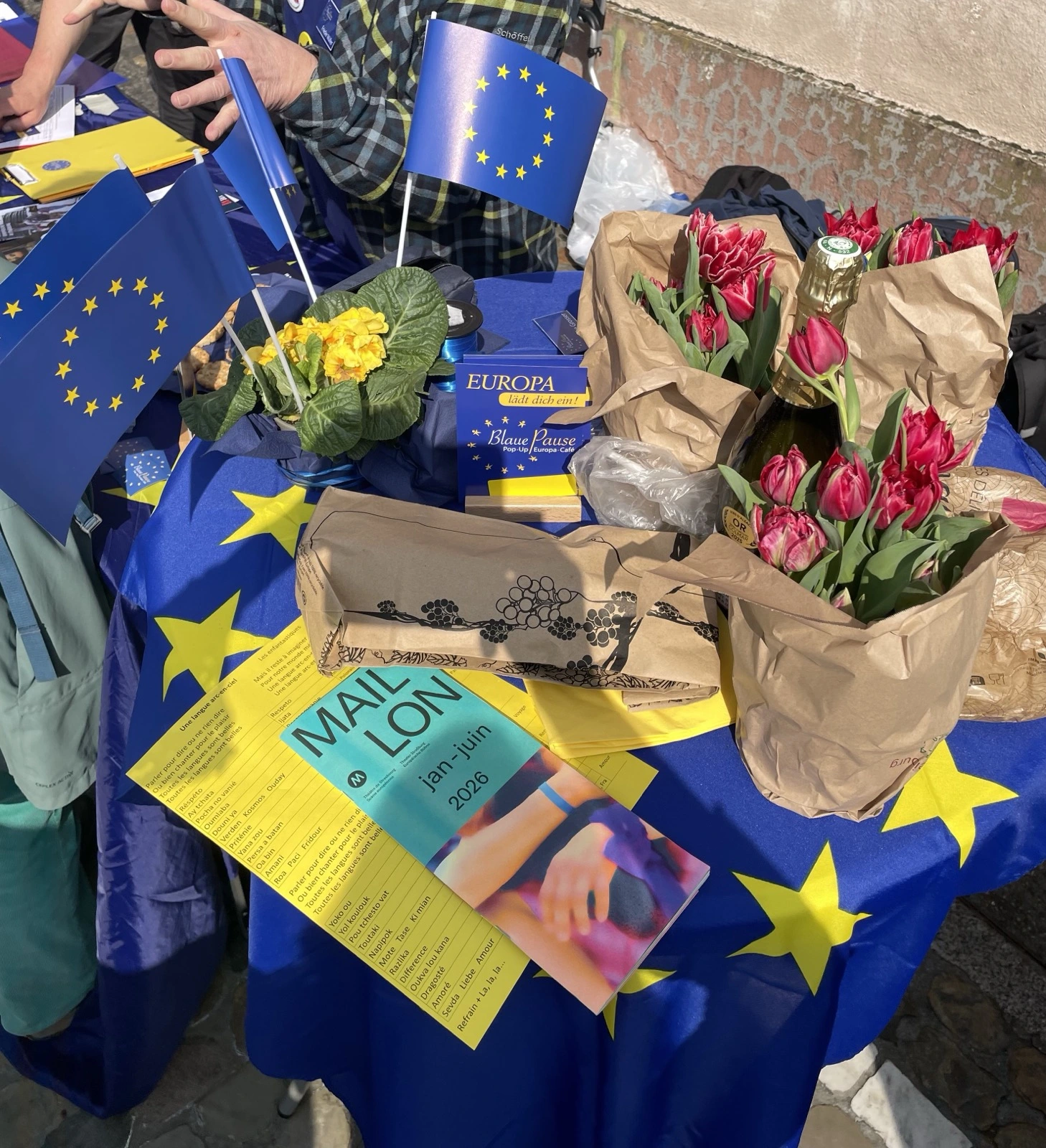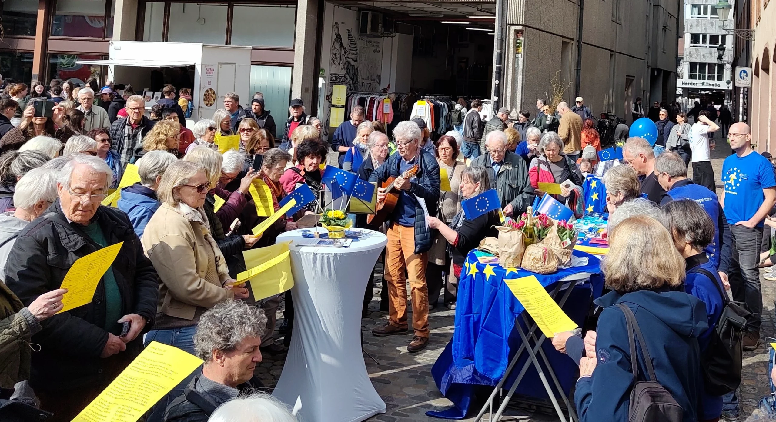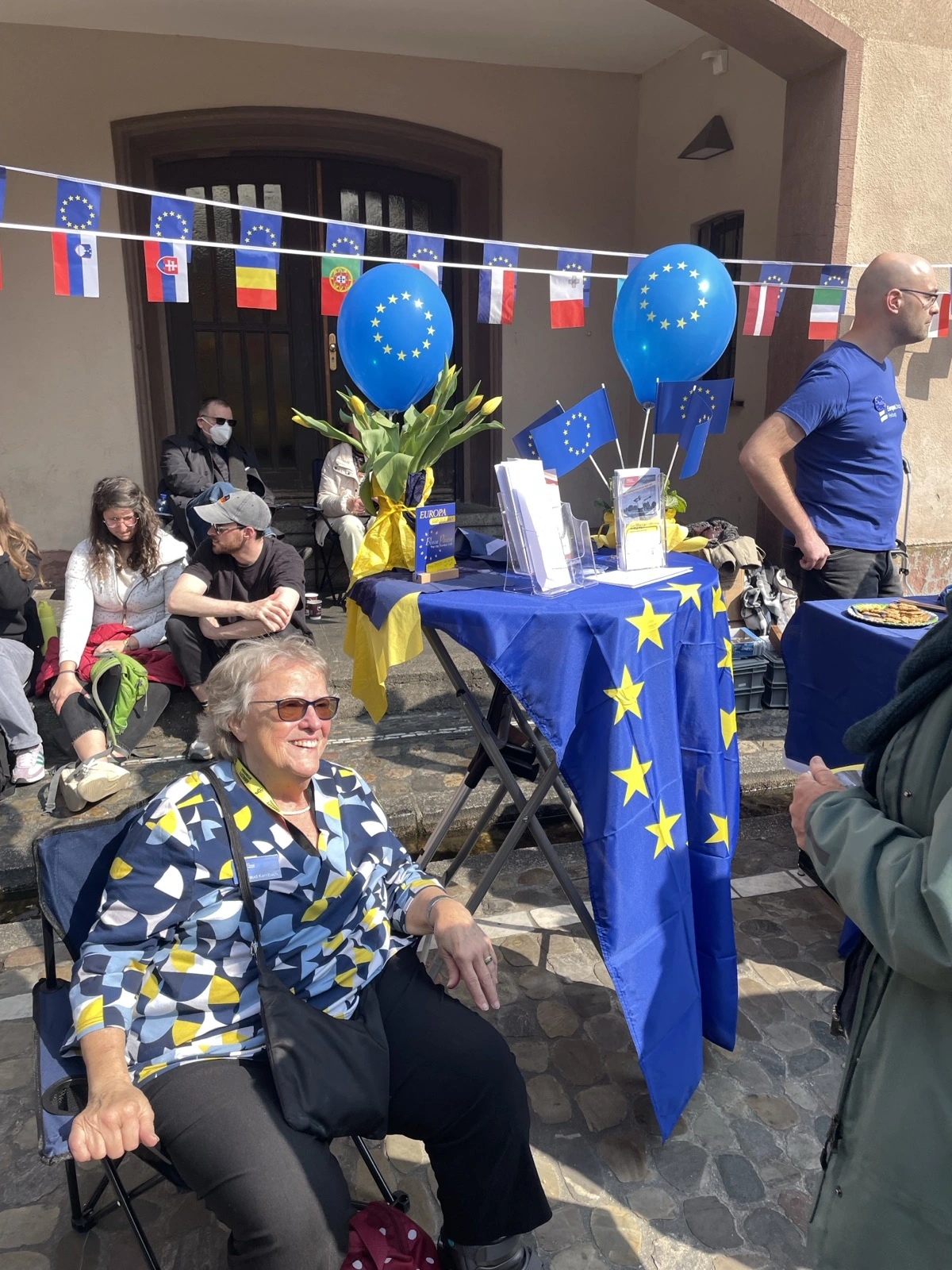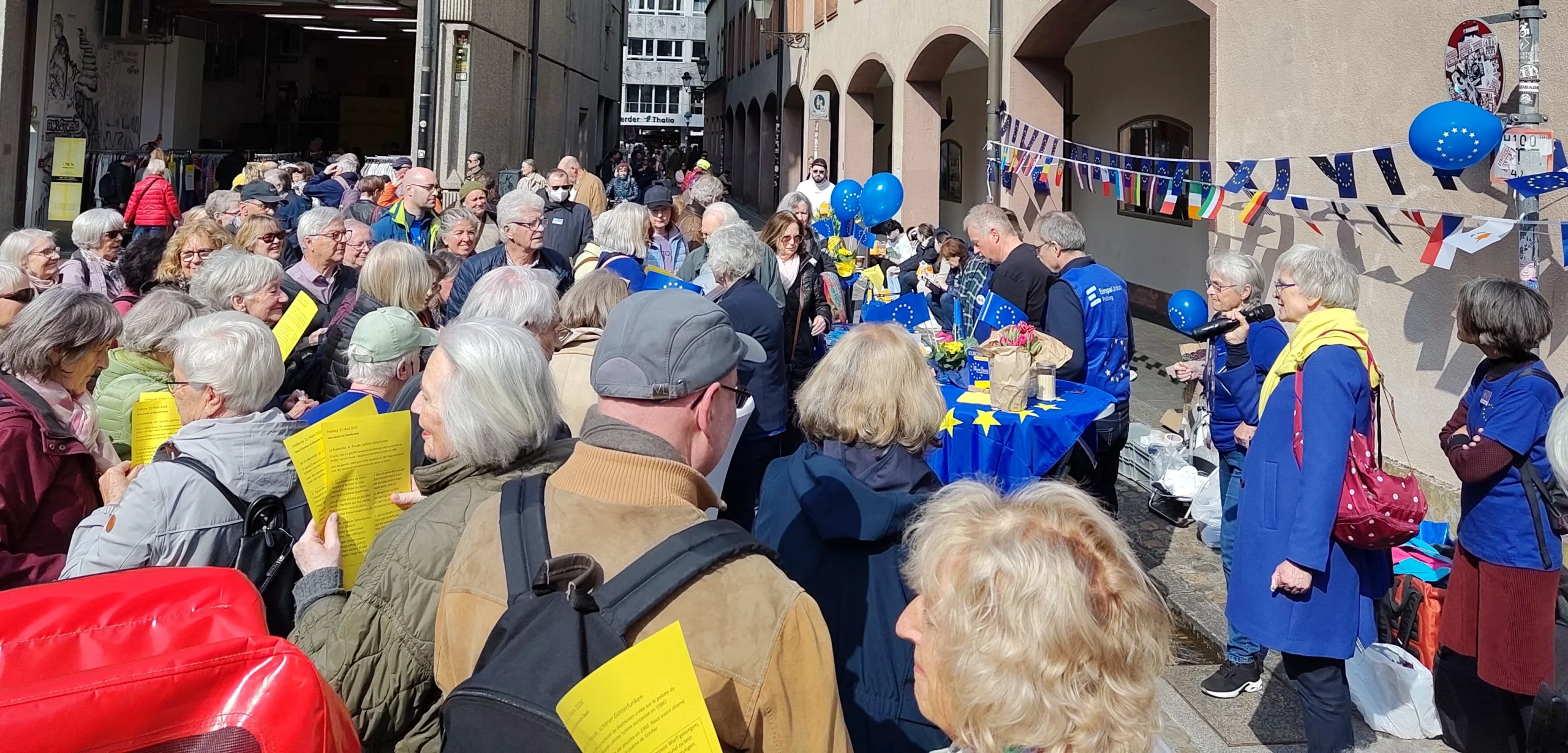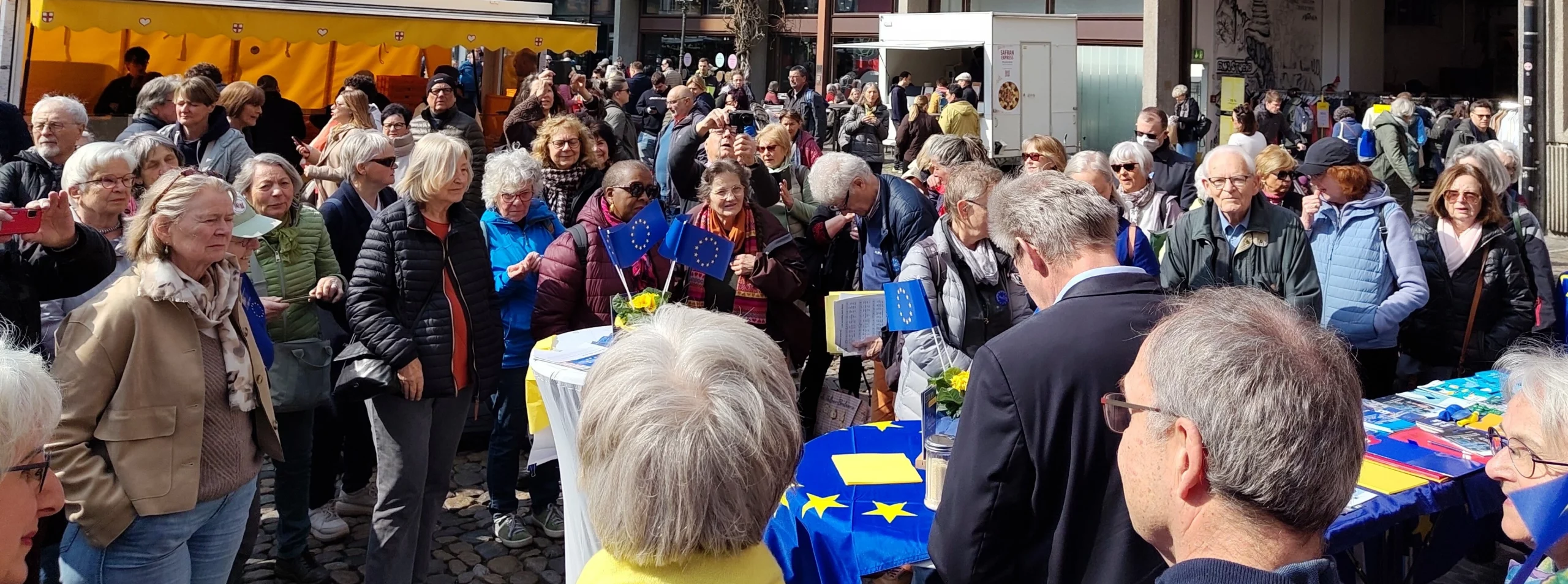 Unsere Stände kurz nach Abschluss der Aufbauarbeiten, von der Conrad-Gröber-Straße aus fotografiert.